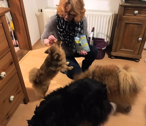 Am Freitagabend, kurz vor 20:00 Uhr, haben Jule, Michael und die drei Hunde ihre Freunde in München erreicht. Die Hunde sind ziemlich platt und die beiden Hamburger entscheiden, dass es für die Vierbeiner nur einen kleinen Snack aus getrocknetem Hühnerfilet gibt. In der Nähe ist eine kleine Wiese – nichts zum Toben, aber darauf haben Lancy, Sunny und Luna jetzt eh keinen Bock.