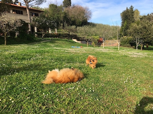 Fünf Tage wohnen Jule, Michael und die drei Hunde nun schon im Ferienhaus In Toscana, in einem sehr gemütlichen Zwei-Zimmer-Appartement im 1. Stock. Die Hunde haben sich gut eingelebt. Während die kleine Luna auch schon mal selbstständig kleine Ausflüge in den wunderschönen Garten unternimmt, bleiben Lancy und Sunny stets an der Seite von Herrchen oder Frauchen.